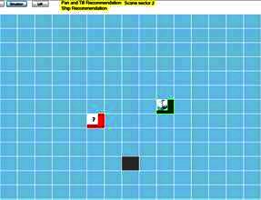 Figure 3 shows the captain radar screen. The figure illustrates this scenario in which the risk assessment unit requests the pan and tilt device to re-scan sector 2. The request can be seen at the top of the virtual map and will be highlighted for the operator.